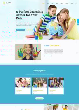 Kids Center Website Template - This professionally designed kids center website template is a perfect match for easily promoting the classes at modern pre-school educational institutions.