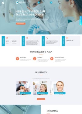 Website Template for Dental Clinics - Denta Plus is a responsive website template for dental clinics. This template is informative & highly customizable thanks to the feature-rich Novi Builder.